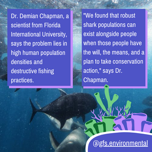 According to researchers, there were almost no sharks on 69 reefs across the Dominican Republic, the French West Indies, Kenya, Vietnam, the Windward Dutch Antilles, and Qatar. This is worrisome; ecosystems rely on food chains to keep populations of various animals under control. The sharks, according to Dr. Demian Chapman who is the Global FinPrint co-lead and Associate Professor in the Department of Biological Sciences and Institute of Environment at Florida International University, are dying off due to three main factors: the "intersection between high human population densities, destructive fishing practices, and poor governance." Global FinPrint is led by Florida International University as an initiative of the Paul G. Allen Family Foundation. They perform data collection and analyze the world's populations of reef sharks.